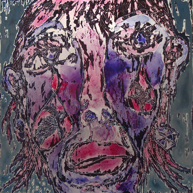 Punta seca, acrílico, tela y tintas sobre aluminio