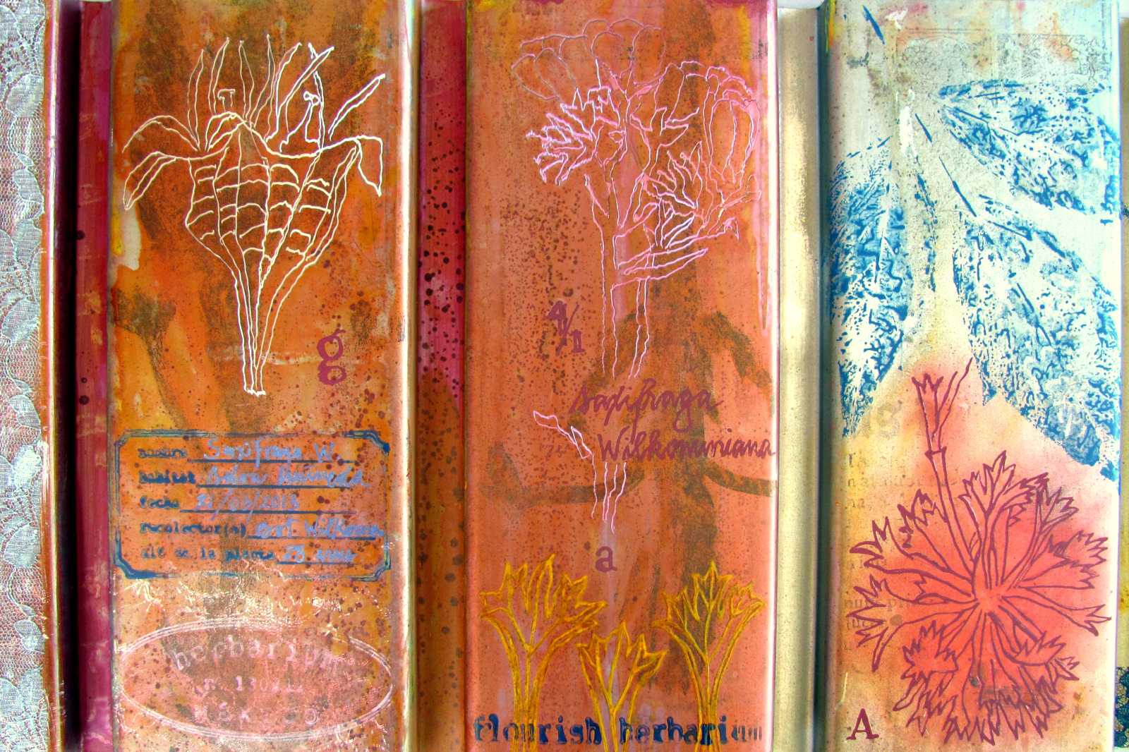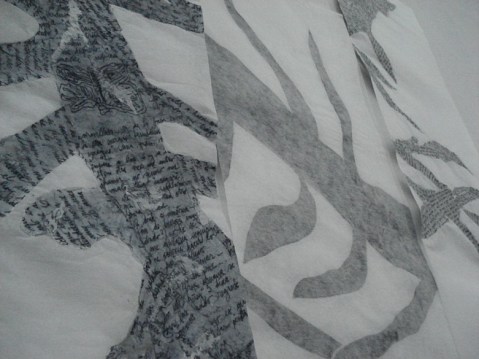 Collage (páginas de mis diarios) sobre tiras de fieltro